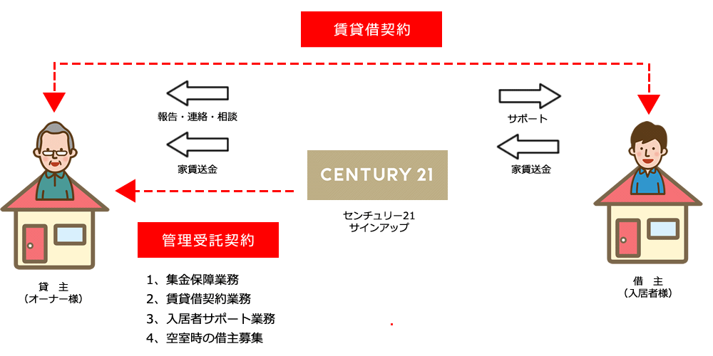 - 毎月の家賃の回収と送金代行を行います。