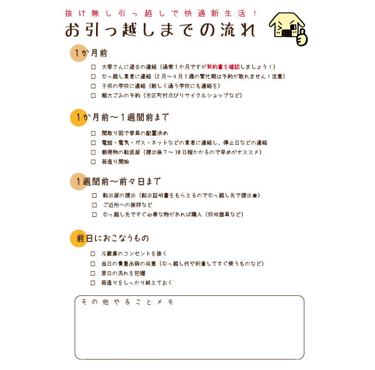 内覧チェックシートに続き、お引越しチェックシートを作成しています