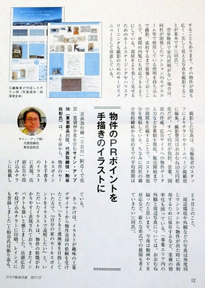 「住み慣れた家への思い入れをイラストにします。」という企画を売却ページで展開しています。粕谷さんは4年前、物件のセールスポイントを手書きのイラストで表現。店舗広告や投げ込みチラシに活用しています。きっかけはイラストが趣味の工業デザイナーさんからの売却依頼で「自分の家のセールスポイントをイラストで説明したい」と提案がありました。売却における住んだ人にしか分からないセールスポイントが的確に盛り込まれており、結果的に1ヶ月弱で成約できました。これを機に売却のツールとして制作するサービスを開始しています。(※専任媒介契約者の方に限ります)