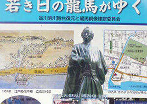 ペリーが開国を求め浦賀に来航した際、龍馬は立会川に設置された浜川砲台の警護の任に就いていたそうです。龍馬人気を風化させないようにという意味も込め、地元有志の出資により平成22年11月13日、東日本唯一のブロンズ製龍馬像として生まれ変わりました。19歳当時をイメージし、10歳ほど若返った龍馬。また立会川に活気をもたらしてくれそうです。